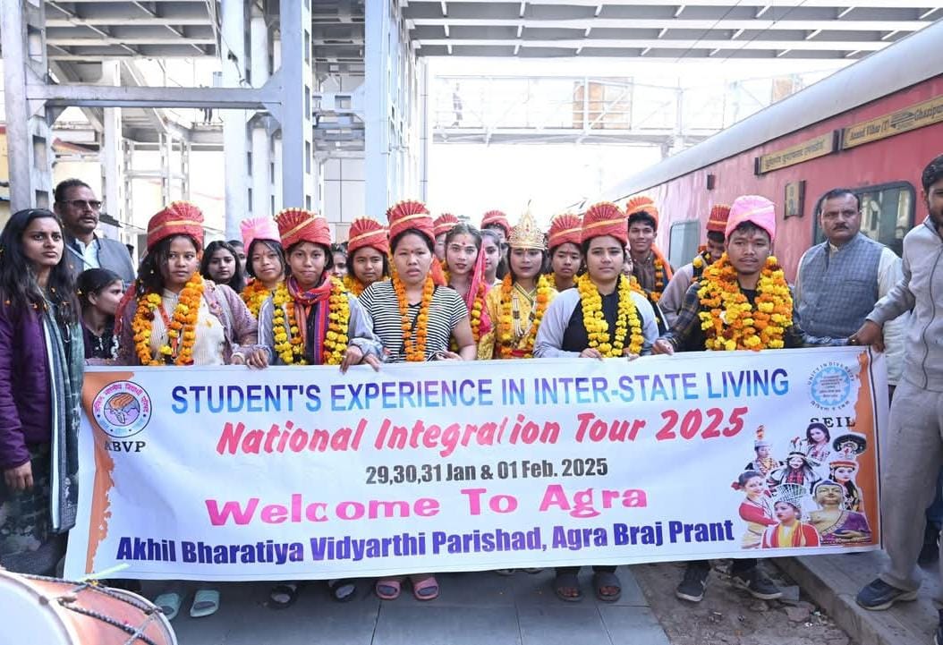 आगरा। अखिल भारतीय विद्यार्थी परिषद् की (एसईआई) यात्रा ब्रज की पावन दधरा पर पधार चुकी है। सील विद्यार्थी परिषद का प्रकल्प है यह यात्रा एक अंतरराज्यीय छात्र जीवन दर्शन की राष्ट्रीय एकात्मता यात्रा, जिसका उद्देश्य भिन्न-भिन्न राज्यों की सांस्कृतिक विरासत एवं भाषा शैली आदि समझना है।