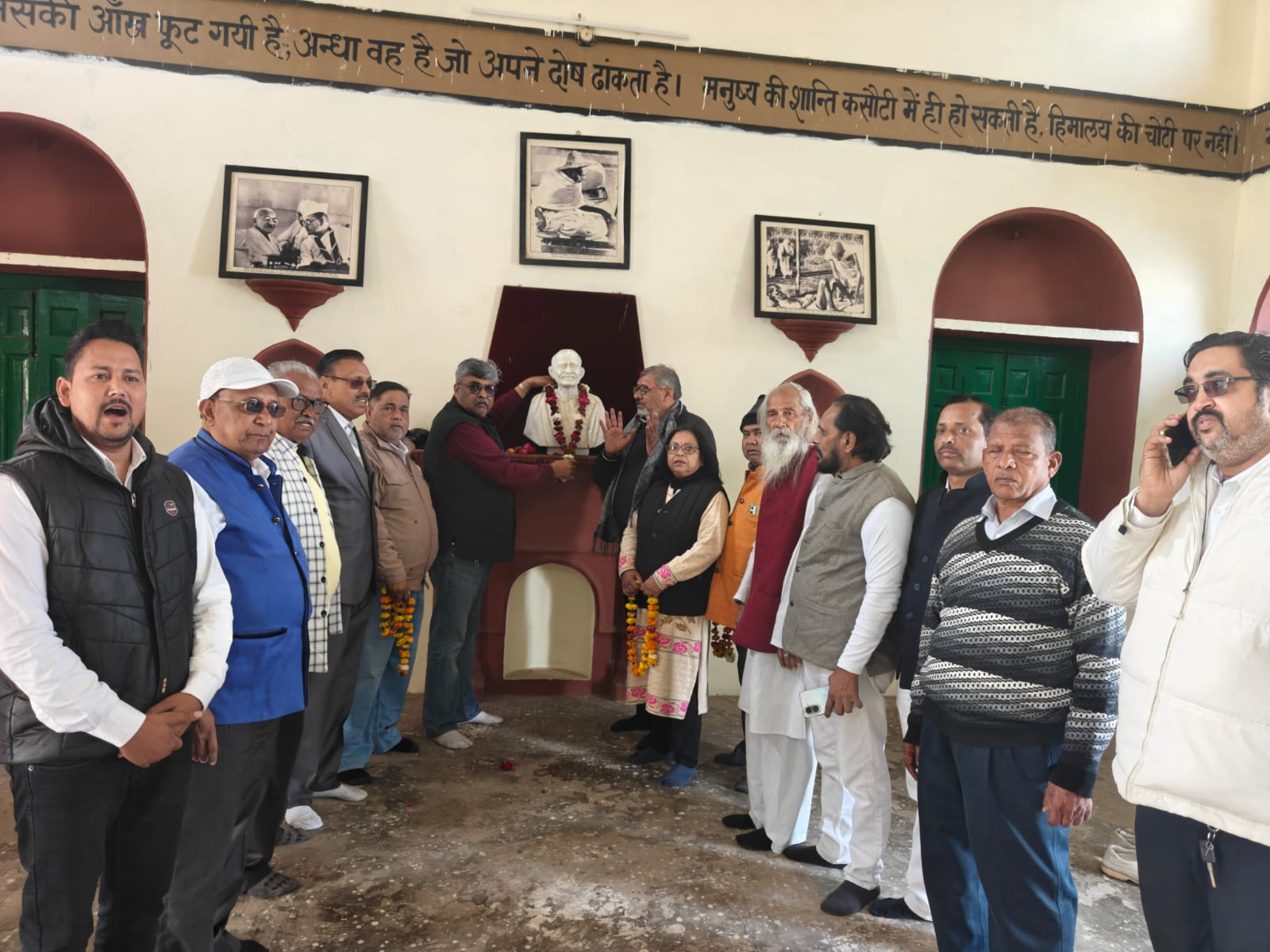 सर्व प्रथम राष्ट्रपिता महात्मा गांधी की प्रतिमा पर माल्यार्पण कर श्रद्धांजलि अर्पित की वह मौनव्रत रखा प्रार्थना सभा में सभी कांग्रेस जनों ने राम धुन गाई व गांधी जी के प्रति अपने विचार साझा करते हुए कहा बापू की पावन स्मृति हमारे हृदय पट पर अमिट रूप से अंकित है इस देश में बापू ने जो महान क्रांति कर दिखाई उससे एक चमत्कार ही कहना होगा। श्रद्धा सुमन अर्पित करने वालो में उपस्थित थे।प्रमोद कुशवाहा,आर.वी.धाकरे,अभय सिंह,लता कुमारी, संतोष उपाध्याय अशोक सागर प्रदीप चंसोलिया, चौधरी बांकेलाल, धर्मेंद्र शर्मा ,बसंत लाल इंजीनियर ,अमीरचंद जाटव अजहर वारसी सतेन्द्र कैम,विष्णु दत्त शर्मा,चौ.बच्चूसिंह,चौ.बाकेलाल, धर्मेंद्र शर्मा, आदि उपस्थित थे