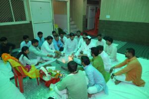 क्षेत्रीय संगठन मंत्री मनोज नीखरा ने हवन कुंड में प्रथम आहुति अर्पित कर पूजन का शुभारंभ किया।