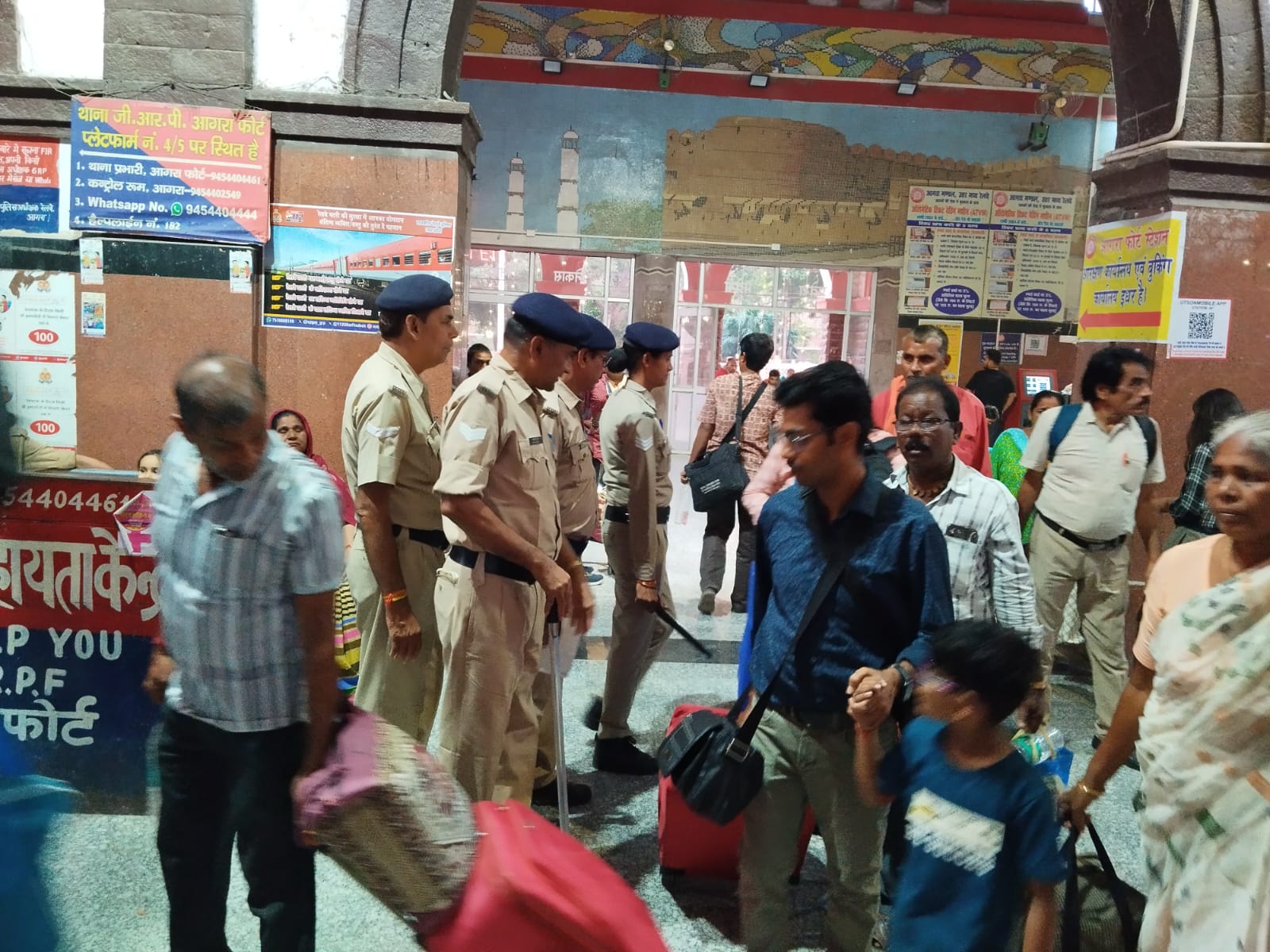 आगरा।आरपीएफ आगरा किला द्वारा आगरा किला स्टेशन पर दीपावली और छठ के दौरान ट्रेनों में यात्रियों की अत्यधिक भीड़ को देखते हुए चेकिंग और सुरक्षा व्यवस्था के संबंध में विशेष चेकिंग अभियान चलाया गया। यह अभियान 24/10/2025 को आगरा किला स्टेशन एरिया, प्लेटफार्मों, वेटिंग रूम इत्यादि पर चलाया गया, जिसमें स्टेशन एरिया में विस्फोटक पदार्थ की तलाश की गई। चेकिंग के दौरान सब कुछ ठीक रहा और यात्रियों को लाइन लगवाकर ट्रेनों में बैठवाया गया।