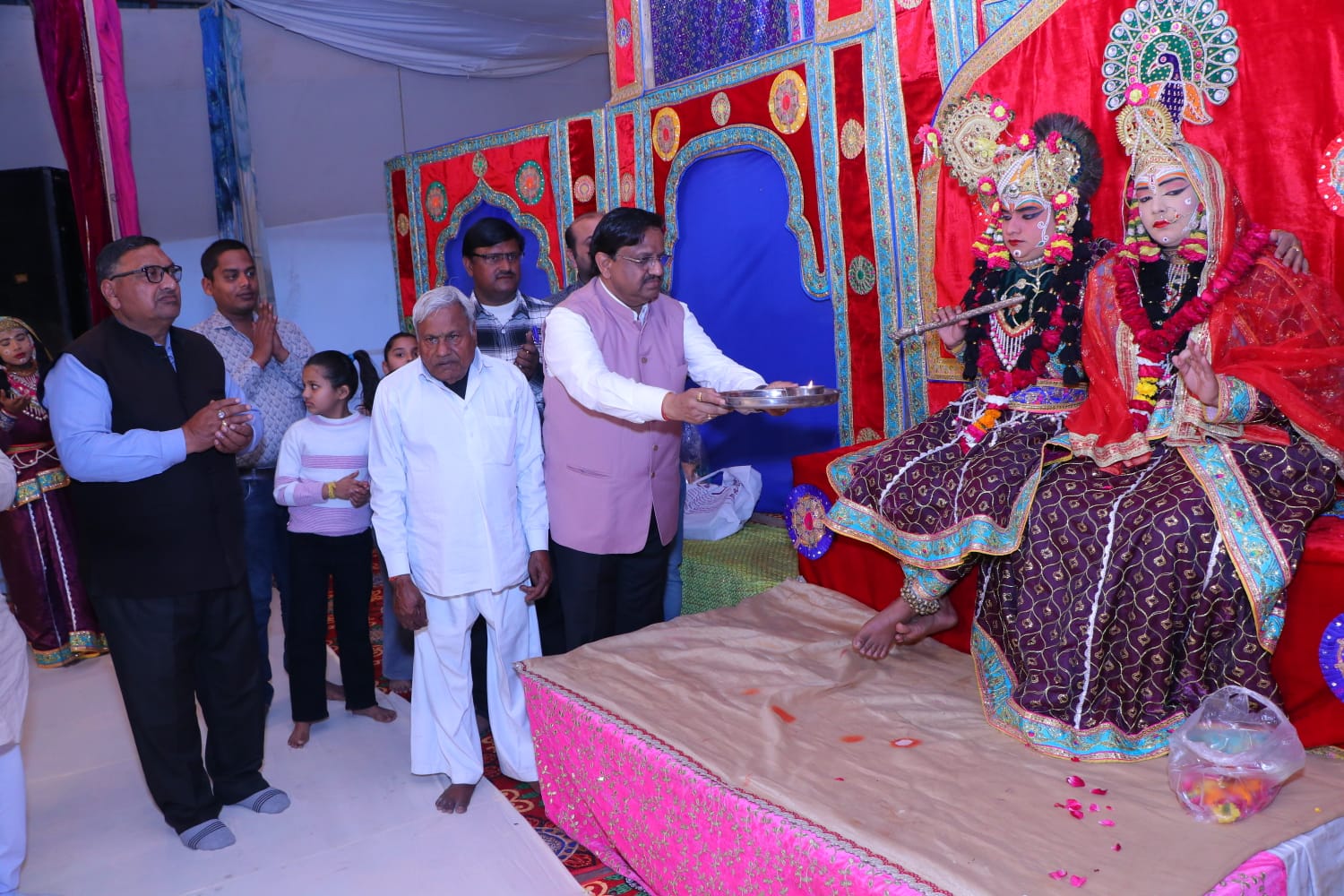 कार्यक्रम का शुभारंभ उत्तर प्रदेश लघु उद्योग निगम के अध्यक्ष राकेश गर्ग द्वारा ठाकुर जी एवं स्वरूपों की विधिवत आरती उतार कर हुआ। इस अवसर पर अध्यक्ष हरी चंद्र गर्ग, वरिष्ठ उपाध्यक्ष दिनेश चंद्र गोयल, राजीव गुप्ता, देवेश शाह, मंच व्यवस्थापक अनीश अग्रवाल, जय प्रकाश अग्रवाल, शंभू नाथ, राज कुमार, सत्य प्रकाश, विक्रांत गोयल, गोपाल गोयल, मीरा रानी, राधा रानी, रेणु गर्ग, राकेश अग्रवाल, नीलेश शाह, जिग्नेश शाह, राहुल गुप्ता आदि उपस्थित रहे।