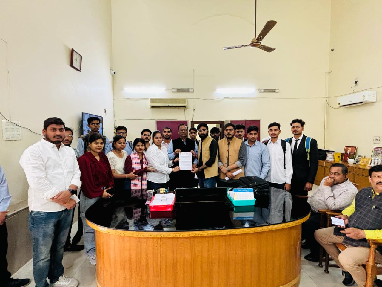 आगरा।अखिल भारतीय विद्यार्थी परिषद आगरा कालेज इकाई द्वारा कालेज में चल रही अनियमितताओं को लेकर प्राचार्य को ज्ञापन सौंपा। लॉ के विद्यार्थियों के लिए तत्काल मूट-कोर्ट खुलवाना, LLB एवम BALLB के एडमिशन की सूची, बाहरी लोगो पर प्रतिबंध लगाते हुए आईडी कार्ड चेक करके प्रवेश, सभी शिक्षक क्लास लेने जाए एवम सभी विभागों के बाहर टाइम टेबल चस्पा किया जाए, छात्राओं के लिए GCR (girls common room), कालेज में व्यवस्थित कैंटीन, साइबर कैफे, परिसर की सफाई रूपी 9 सूत्रीय मांगपत्र प्राचार्य को दिया एवम तत्काल कार्यवाही करने की मांग की और 3 दिन का समय दिया और ऐसा ना होने की स्थिति में उग्र आंदोलन करने की चेतावनी दी। कालेज अध्यक्ष आकाश राणा ने कहा कि कालेज समस्याओं का अड्डा बन गया है यहां ना कक्षाएं लगती है और ना ही कालेज परिसर में पठन-पाठन का माहौल है जो की बहुत ही दुख की बात है। कालेज मंत्री माही सिंह ने बताया कि कई वर्षो से मूट कोर्ट बंद पड़ा है लॉ का विद्यार्थी बिना मूट कोर्ट के कैसे अपनी पढ़ाई को पूरी करेगा छात्राओं के लिए ना स्वच्छ टॉयलेट है और ना कोई GCR की व्यवस्था इसी कारण आज विद्यार्थी आगरा कालेज में एडमिशन लेने से कतरा रहा है।
