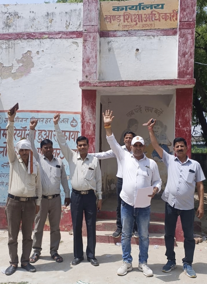 आगरा।खण्ड शिक्षा अधिकारी कार्यालय अछनेरा पर उत्तर प्रदेश प्राथमिक शिक्षामित्र संघ के जिलाध्यक्ष वीरेन्द्र सिंह छौंकर के नेतृत्व में समर कैंप में नियम विरुद्ध मनमाने ढंग से लगायी गयी ड्यूटी को लेकर प्रदर्शन किया गया तथा समस्याओं को लेकर खण्ड शिक्षा अधिकारी को सम्बोधित ज्ञापन उनकी अनुपस्थिति में डाक में रिसीव करा दिया तथा मांगें पूरी न होने पर ड्यूटी का बहिष्कार करते हुए आंदोलन की चेतावनी दी गयी है जिलाध्यक्ष वीरेन्द्र सिंह छौंकर ने कहा है कि किसी भी शिक्षामित्र का शोषण नहीं होने दिया जाएगा जरूरत पड़ी तो संगठन आंदोलन से भी पीछे नहीं हटेगा ।