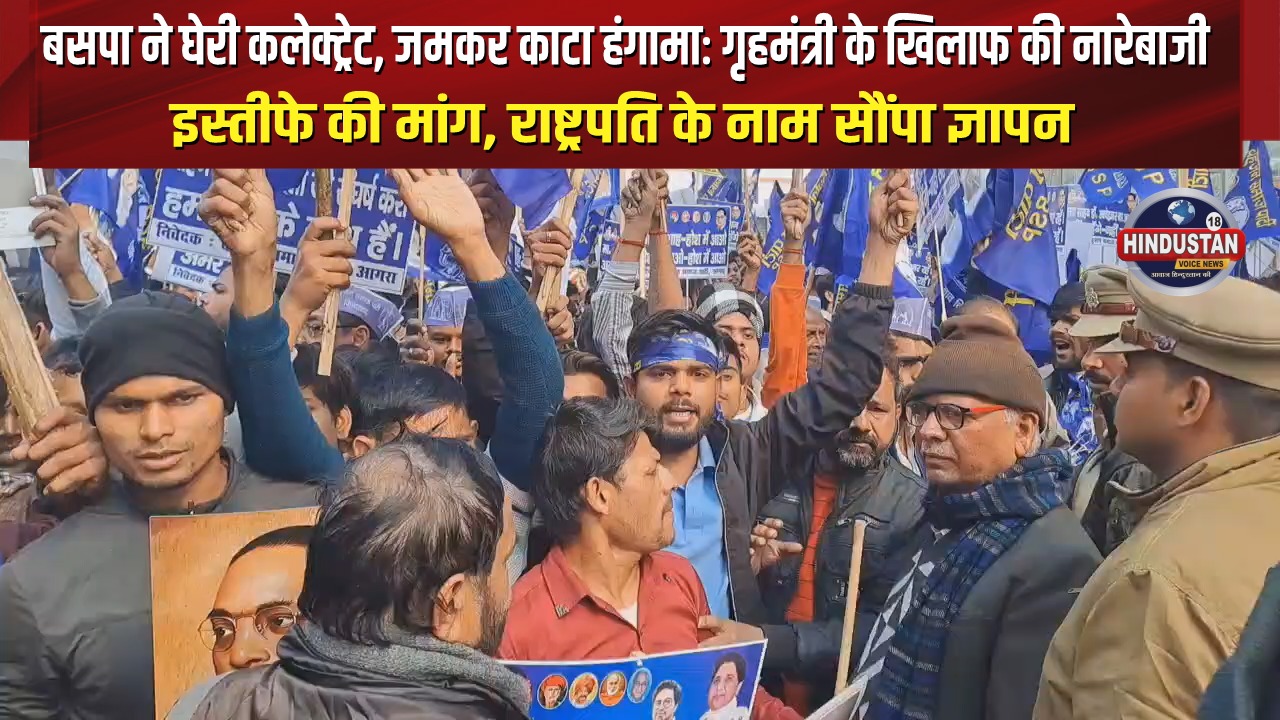 बसपा ने घेरी कलेक्ट्रेट, जमकर काटा हंगामाः गृहमंत्री के खिलाफ की नारेबाजी, इस्तीफे की मांग, राष्ट्रपति के नाम सौंपा ज्ञापन