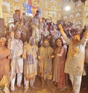 फोटो कैप्शन जीवनी मंडी स्थित श्री खाटू श्याम मंदिर में चल रहे श्री श्याम फागुन महोत्सव के अंतर्गत हुई गुलाल की होली का मनोहारी दृश्य।
