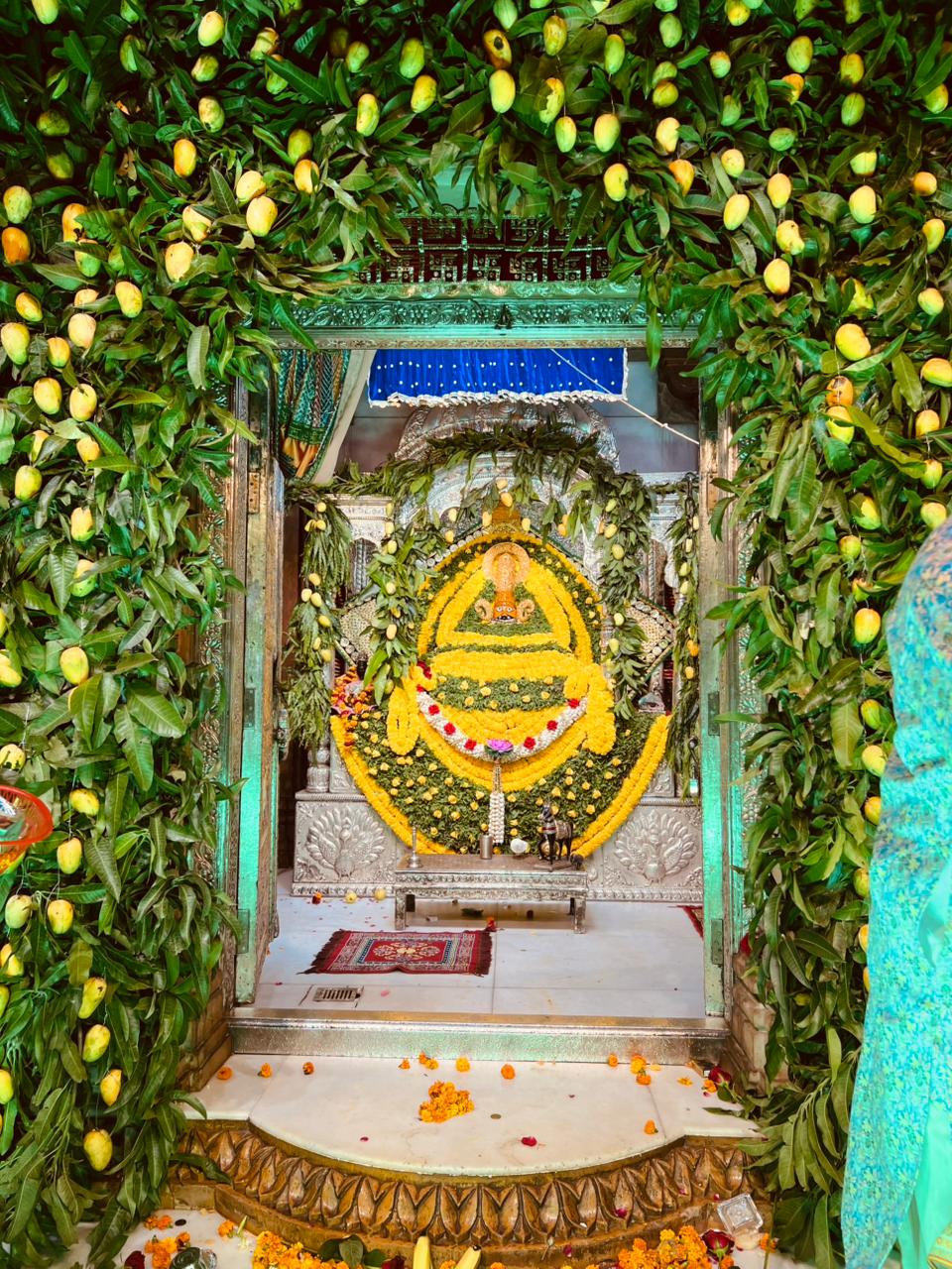 मंदिर परिसर को आमों के गुच्छों और रंग-बिरंगे पुष्पों से भव्य रूप से सजाया गया था। मुख्य आकर्षण रहा आमों का फूल बंगला, जिसमें खाटू श्याम जी पीले और हरे आमों के मध्य अलौकिक स्वरूप में विराजमान थे। यह दृश्य भक्तों को आध्यात्मिक आनंद और सौंदर्य रस से भर गया।