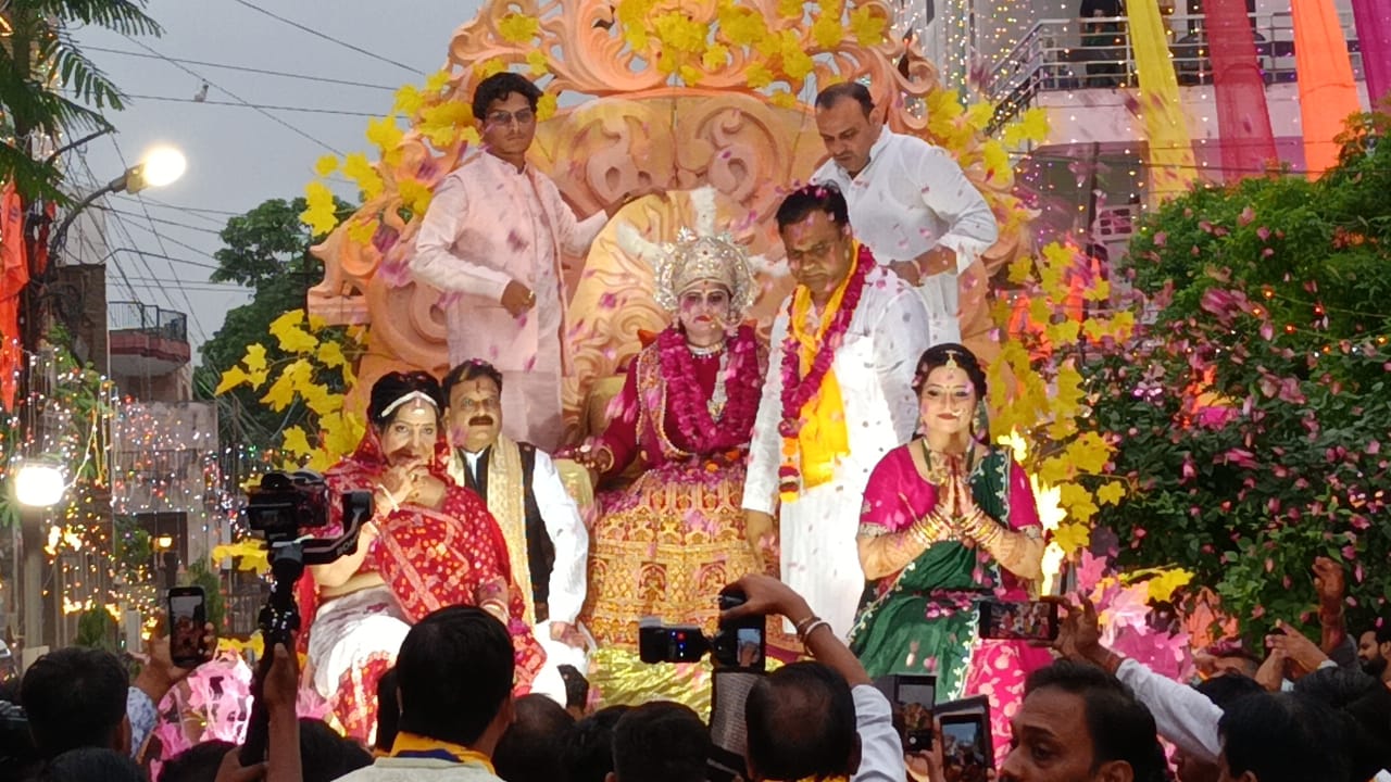 मां भवानी की स्तुति के लिए सखियों संग ढोल नगाड़ों के साथ धूमधाम से निकला सीता जी का डोला, 51 दीपों से मां गौरी की स्तुति की गई, जगह-जगह पुष्प वर्षा कर सीता जी के डोले का हुआ स्वागत