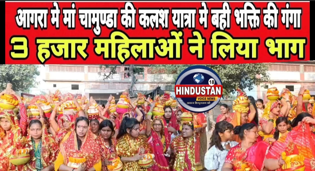 आगरा। भक्ति की बहती गंगा के बीच मां चामुण्डा के गूंजते जयकारे। फूलों से सजी माता रानी की झांकी और सतरंगी रोशनी व पुष्पों से सजा मंदिर। भक्ति और श्रद्धा भाव में डूबे भक्तों के साथ हर तरफ उत्साह और उमंग बिखरी थी। आज मंदिर में कलश स्थापना व कलश यात्रा के साथ प्राचीन मंदिर मां चामुण्डा देवी (राजामंडी स्टेशन के निकट) वार्षिक मेला का शुभारम्भ हुआ। जिसमें लगभग 3 बजार से अधिक श्रद्धालुओं ने भाग लिया।