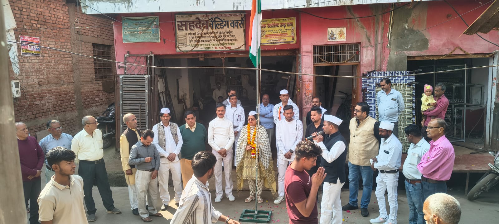 आगरा।कांग्रेस सेवादल अध्यक्ष सचिन चौधरी के नेतृत्व में नगला पदी विद्यानगर वार्ड-72 ध्वज वंदन पर मनरेगा और एस.आई.आर पर चर्चा के दौरान ध्वजारोहण वरिष्ठ कांग्रेस नेता रमाशंकर शर्मा व महिला कांग्रेस की राष्ट्रीय सचिव नम्रता दान द्वारा किया गया। रवि मिलन में वरिष्ठ कांग्रेसी श्री देवी चरन शर्मा व श्रीमती कुसुम कश्यप का माल्यार्पण कर स्वागत किया गया संचालन राम वकील धाकरे ने किया।