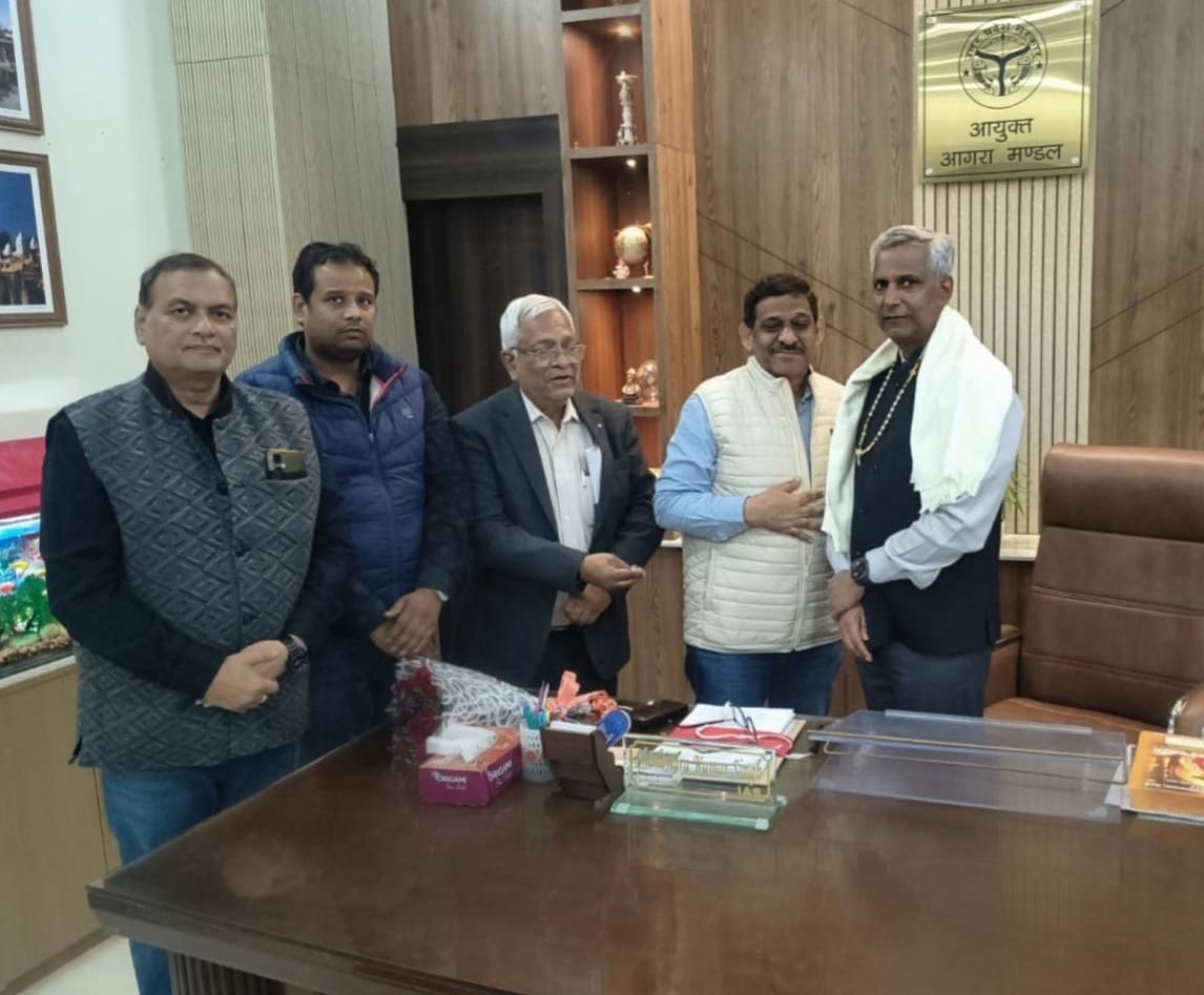चैम्बर प्रतिनिधिमंडल द्वारा आगरा के विभिन्न विकास के मुद्दों पर मंडलायुक्त महोदय के साथ चर्चा की गयी। अवगत कराया गया।