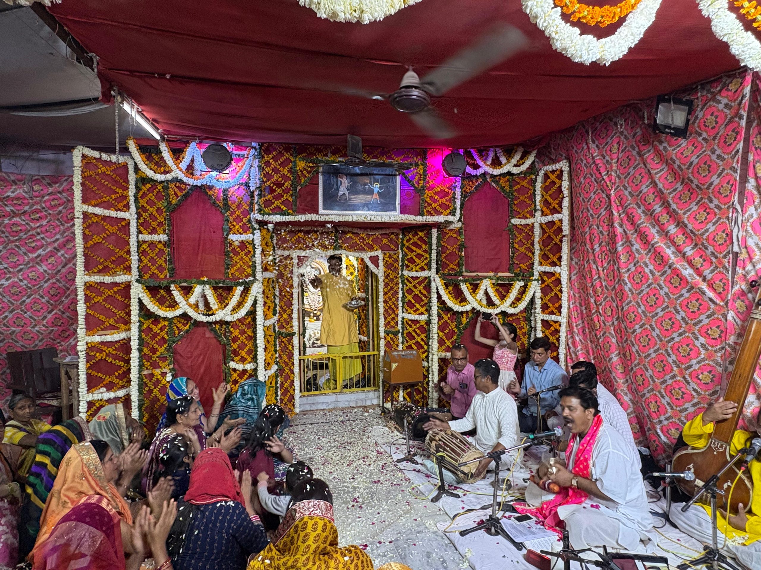 तानपुरे की मधुर तान पर जब “लाल गोपाल गुलाल हमारी आंखों में डारो जू” जैसे पद गूंजे, तो संपूर्ण वातावरण आध्यात्मिक आनंद से भर गया। भक्तजन भक्ति की लहर में झूमते और नृत्य करते दिखाई दिए।