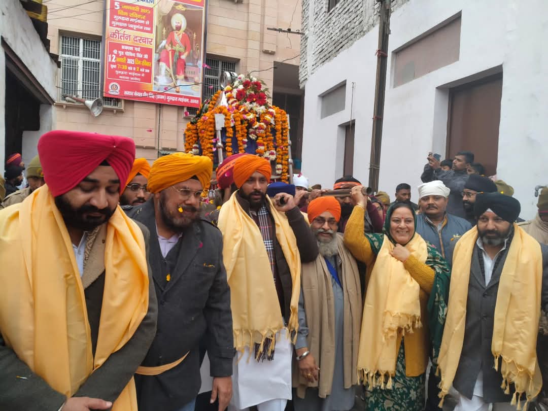 गुरुद्वारा मधुनगर का विशाल जत्था नरेंद्र सिंह लालिया एवं अर्जिंदर सिंह की अगुवाई में पालकी के आगे चल रहा था।