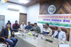 आगरा। चैम्बर सभागार में चैम्बर अध्यक्ष संजय गोयल की अध्यक्षता में जलकल के एक्सईएन प्रेमचंद आर्य, बिल संग्रहणकर्ता अनिल कुमार, कंप्यूटर ऑपरेटर अरून सक्सेना के साथ जलकल समाधान कैम्प का आयोजन किया गया।