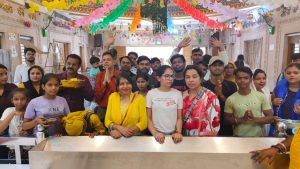 आगरा। जीवनी मंडी स्थित श्री खाटू श्याम जी मंदिर में शनिवार को जन्माष्टमी महोत्सव का आयोजन भव्यता और श्रद्धा के साथ किया गया। पूरा मंदिर परिसर रंग-बिरंगे विदेशी फूलों, टॉफी-चॉकलेट और खिलौनों से सजाया गया था। इत्र की सुगंध से महकते वातावरण में भक्तों ने देर रात तक भक्ति और उत्सव का आनंद लिया।
