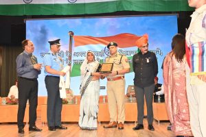 वीर नारियों का सम्मान करते हुए एयर कमोडोर सतीश गुप्ता मंच से नीचे उतर आए। सम्मानित करने के बाद पैर छूकर आशीर्वाद लिया। एयर कमोडोर की पत्नी श्वेता गुप्ता ने उन्हें गले लगाकर मान बढ़ाया।
